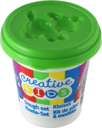 Poklopci čašica su u različitim bojama i služe i kao jednostavni kalupići za utiskivanje omiljenih oblika. Roditelji će cijeniti pregledno spremanje u kutiji i minimalan nered. Djeca će zavoljeti mekšu teksturu i raznolike boje od kojih mogu napraviti životinjice, likove i čitave male svjetove.