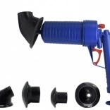 Praktičan tlačni čistač odvoda s 4 zamjenjivim nastavcima brzo i sigurno uklanja začepljenja u sudoperima, umivaonicima, tuševima i WC-u. Koristi snagu komprimiranog zraka, tako da vam neće trebati električna energija ni kemikalije. Snažno čišćenje, univerzalna primjena i izdržljiva izvedba od ABS-a za dugi vijek trajanja.