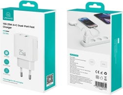 Punjač USAMS CC315 T65 spaja modernu tehnologiju i kompaktno kućište za svakodnevnu upotrebu kod kuće i na putu. Snaga 25 W i dvostruki portovi USB‑C + USB‑A omogućuju učinkovito punjenje većine mobilnih uređaja. Integrirani pametni čip automatski prepoznaje spojeni uređaj i optimizira struju za najbrže, a pritom sigurno punjenje.