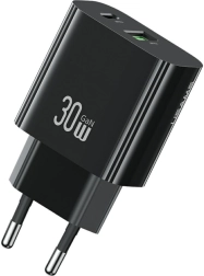 Punjač USAMS 30 W idealno je rješenje za pametne telefone, tablete i drugu elektroniku. Kombinacija USB‑C i USB‑A portova omogućuje punjenje do dva uređaja odjednom, dok inteligentni čip automatski prilagođava struju za optimalno i nježno punjenje. Zahvaljujući GaN tehnologiji možete računati na višu učinkovitost i niže zagrijavanje.