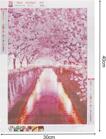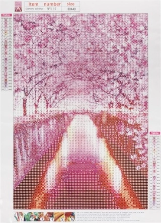 Otkrijte opuštajući svijet dijamantnog slikanja i izradite vlastito umjetničko djelo s motivom romantične aleje sakura. Set sadrži sve potrebno i idealan je za početnike i napredne. Zahvaljujući kodiranom platnu rad je jednostavan i precizan, a gotova slika blista nježnim, sjajnim odsjajem. Sjajan način za opuštanje, razvijanje kreativnosti i dobivanje originalne dekoracije interijera.