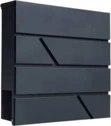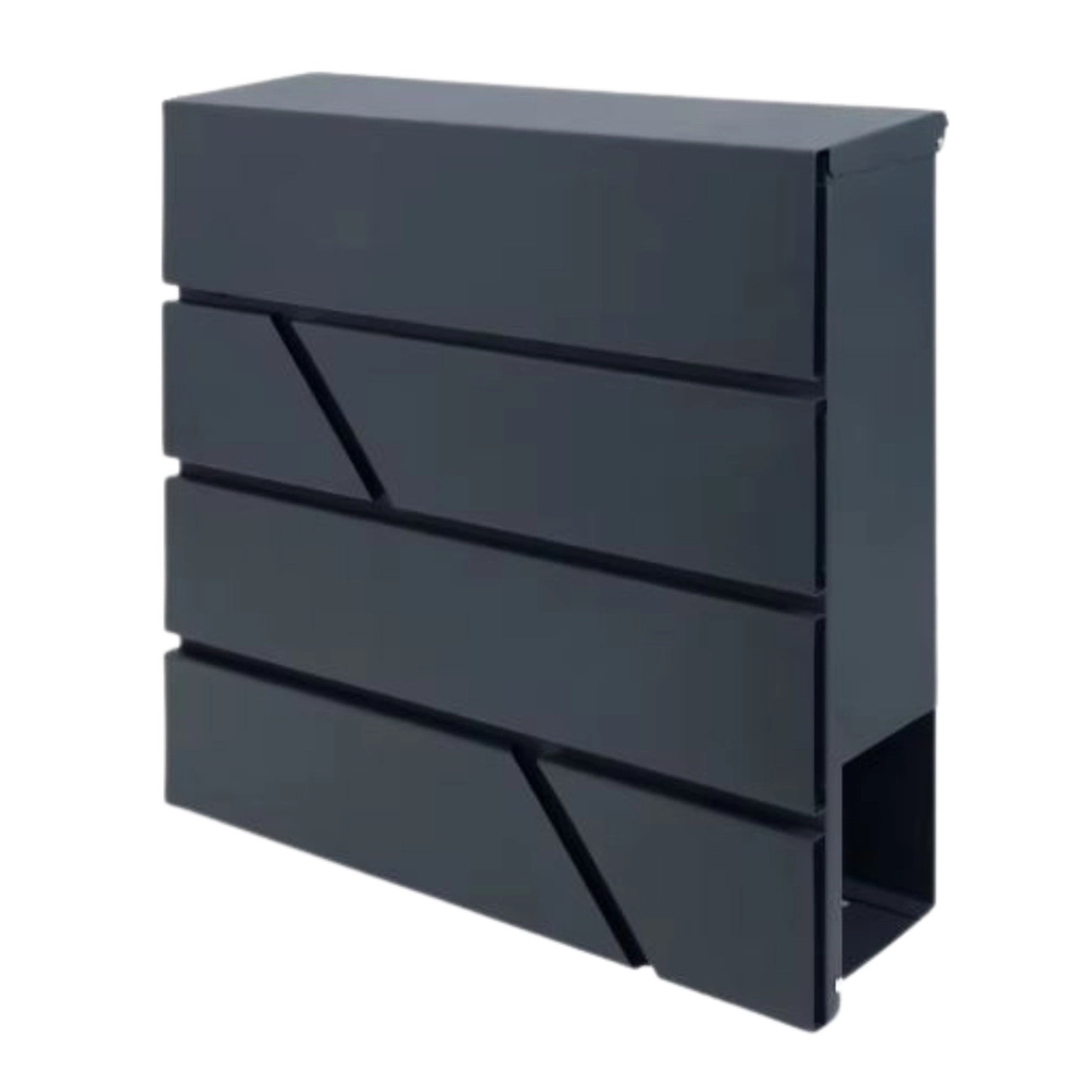 Ova velika poštanska kutija spaja funkcionalnost i bezvremenski izgled. Izrađena je od pocinčanog čelika s praškastim premazom, što osigurava visoku otpornost na koroziju, kišu i mehaničko trošenje. Geometrijski izrezi daju moderan karakter i lako se uklapaju u različite stilove fasada.