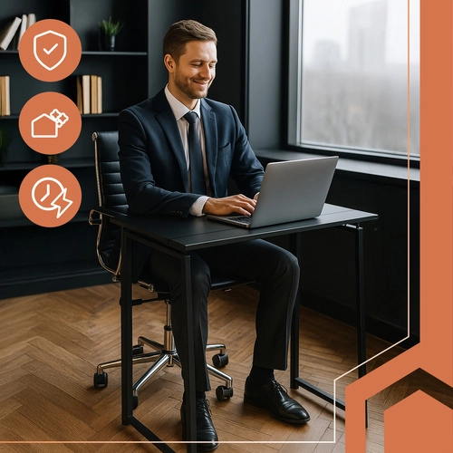 Minimalistički industrijski dizajn s čvrstom metalnom konstrukcijom pruža sigurnost pri radu s prijenosnikom i dokumentima.