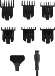 U pakiranju su 6 vođenih češljeva (1–9 mm), USB‑C kabel, zaštita oštrice i četkica za čišćenje za jednostavno održavanje. Trimer se može koristiti bežično i tijekom punjenja, pa je uvijek spreman za rad kod kuće i u barber shopu.