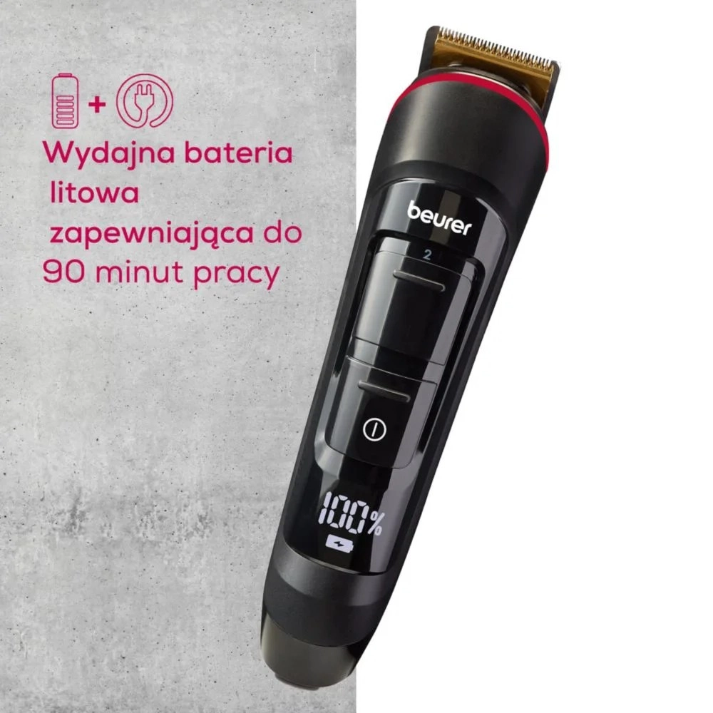 Uredite svoju bradu točno prema svojim željama. Trimer Beurer MN4X kombinira samo-oštreću nehrđajuću oštricu s titanovom površinskom obradom za dug vijek trajanja, nježan kontakt s kožom i glatko šišanje bez čupanja. LED zaslon prikazuje stanje baterije u postocima i tijek punjenja, pa uvijek imate potpunu kontrolu.