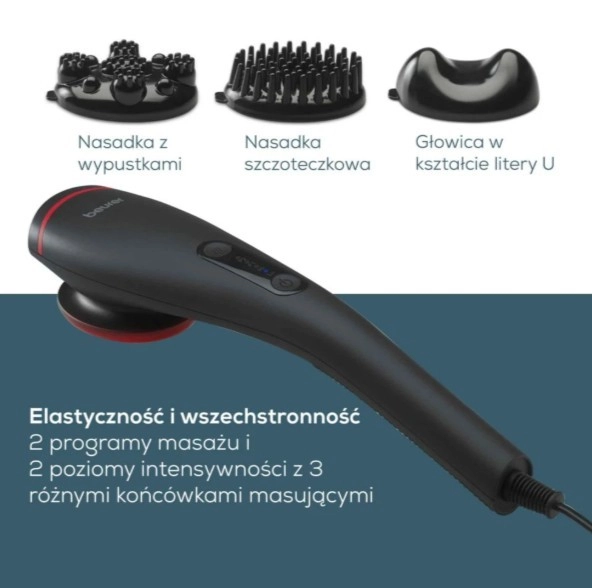 Za prilagodbu masaže vašim potrebama na raspolaganju su 3 izmjenjiva nastavka, 2 programa masaže i 2 stupnja intenziteta. O trenutačno odabranim postavkama jasno informira šarena LED lampica, dok protuklizna drška osigurava siguran hvat tijekom upotrebe.