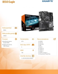 Matična ploča B550 EAGLE za ležište AMD AM4 nudi kompatibilnost s procesorima Ryzen 5000/4000/3000, pouzdani 10+3+1 digitalni VRM, četiri utora DDR4 s podrškom za AMD EXPO i dva M.2 za munjevito pohranjivanje uključujući PCIe 4.0. Tu su i EZ-Latch za brzo otpuštanje PCIe, napredno hlađenje VRM Thermal Armor te moderna povezivost HDMI, DisplayPort i GbE LAN.