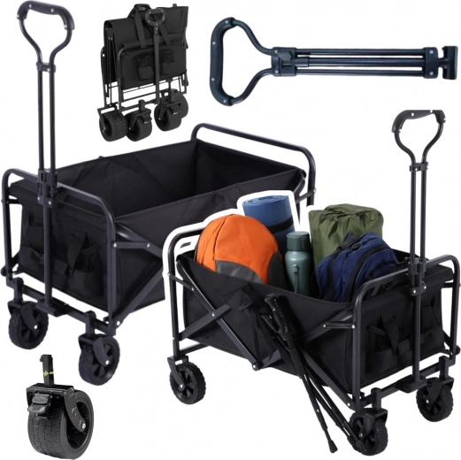 Uživajte u bezbrižnom prijenosu stvari na plaži, u kampu ili po dvorištu. Sklopiva kolica nude prostranu kabinu od 120 l, nosivost 80 kg i izdržljivu kombinaciju metala, tkanine i plastike. Zahvaljujući teleskopskoj ručki s udobnim pjenastim rukohvatom lako se upravljaju, a četiri kotača osiguravaju gladak pokret po različitim podlogama.