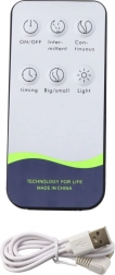 Upravljanje je maksimalno jednostavno – na kućištu se nalaze intuitivne tipke, a na raspolaganju je i praktičan daljinski upravljač. Odaberite kontinuirani ili isprekidani način maglice, postavite timer i boju svjetla prema raspoloženju. Funkcija auto stop pri praznom spremniku štiti uređaj i povećava sigurnost.