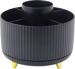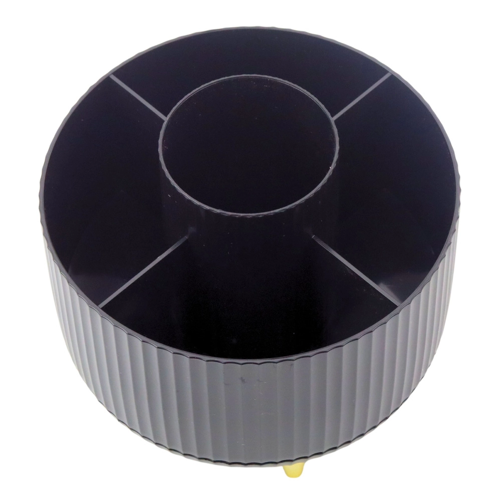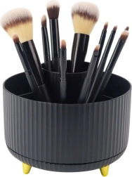 Održavajte red u kozmetici s kompaktnim organizatorom koji se glatko okreće za 360° i omogućuje trenutačan pristup svim pohranjenim stvarima. Otvorena konstrukcija ne ograničava visinu, pa ćete bez problema spremiti i duže kistove i olovke. Minimalistički izgled u crnoj boji pristaje i kućanstvu i profesionalnom salonu.