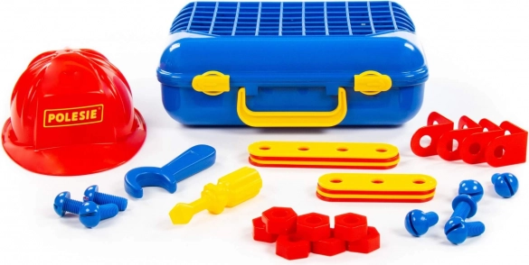 Komplet je smješten u izdržljivom koferu koji se lako prenosi i održava red. Idealan kao poklon za male entuzijaste tehnike i građevnih igara.
