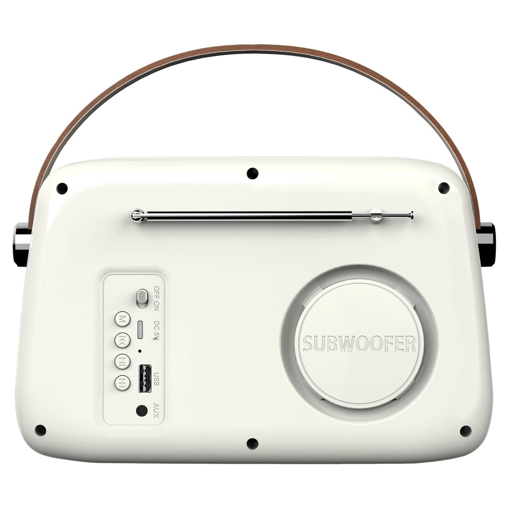 Uživajte u omiljenim postajama i playlistama bilo gdje. Ovaj lagani radio spaja bezvremenski retro dizajn s praktičnim funkcijama: analogno FM ugađanje, pouzdani Bluetooth 5.3 i univerzalni AUX. Ugrađena baterija osigurava do 6 sati slušanja, a praktično se puni modernim priključkom USB‑C.