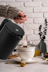 Unutrašnji dio od nehrđajućeg čelika otporan je na koroziju i lako se čisti, dok polipropilensko kućište s dvostrukom stijenkom ostaje hladnije na dodir i bolje zadržava toplinu. Automatsko isključivanje nakon postizanja vrenja i zaštita od pregrijavanja pri radu na suho povećavaju sigurnost pri svakodnevnoj uporabi.