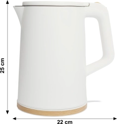 Uživajte u brzom i sigurnom zagrijavanju vode gdje god jeste. Ovaj putni kuhalnik kombinira snagu od 1500 W s praktičnim kapacitetom od 1,7 l, pa priprema čaj ili kavu za cijelu obitelj u nekoliko minuta. Moderan bijeli dizajn uklapa se u svaki interijer, a zahvaljujući duploj stijenci vanjska površina ostaje ugodno hladna.
