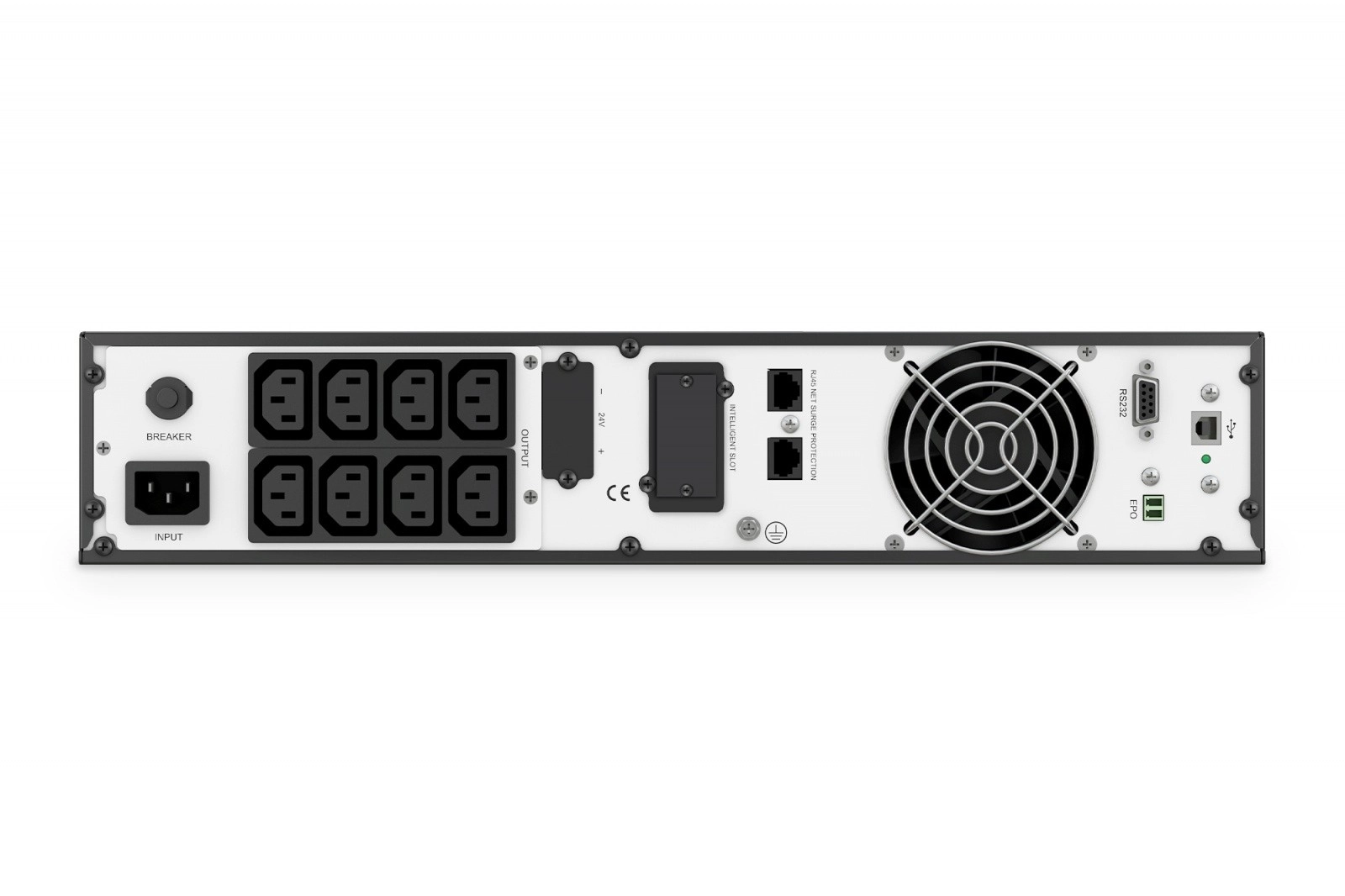 Rotirajući LCD zaslon prikazuje status punjenja, baterije, AC način, baterijski način, bypass i poruke o pogreškama. Konstrukcija Rack/Tower omogućuje fleksibilnu instalaciju u 19" rack ili samostalno. Inteligentno upravljanje punjenjem i brzinom ventilatora produljuje vijek trajanja baterija i povećava pouzdanost.