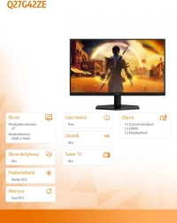Monitor Q27G42ZE dizajniran je za igrače i zahtjevne korisnike koji žele maksimalnu glatkoću i preciznu reprodukciju boja. Tehnologija Fast IPS donosi brze prijelaze i stabilne boje kroz široke kutove gledanja, dok 240 Hz brzina osvježavanja minimalizira zamućenje i trganje slike.