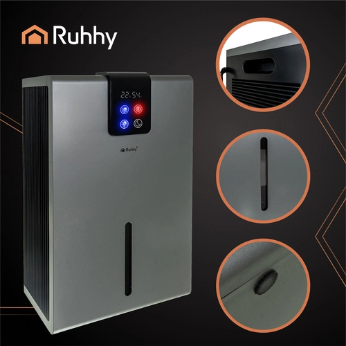 Odvlaživač RUHHY donosi udobnost i zdraviju kućnu klimu. Zahvaljujući tehnologiji Peltier radi tiho i učinkovito, smanjuje vlagu, uklanja neugodne mirise i ograničava širenje plijesni i gljivica. Integrirani higrometar i higrostat prate i reguliraju vlagu i temperaturu u stvarnom vremenu, dok funkcije automatskog isključivanja i odmrzavanja osiguravaju bezbrižan i siguran rad.
