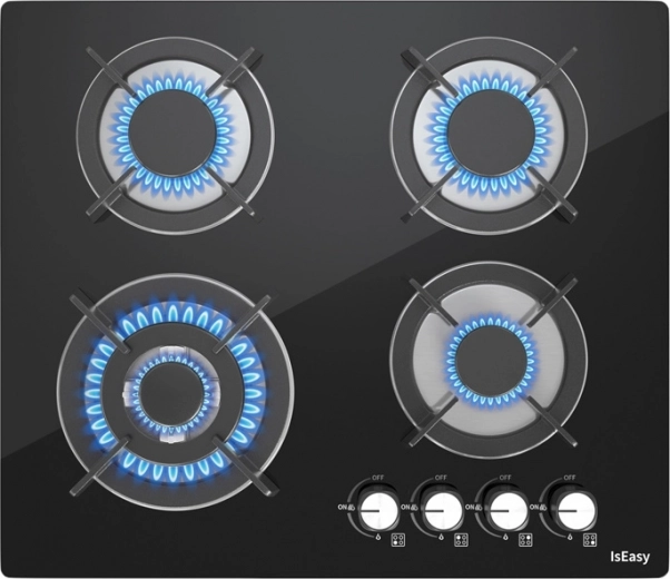 Plinska ploča za kuhanje ISEASY širine 60 cm odličan je izbor za modernu kuhinju. Zahvaljujući elegantnom crnom staklu i rešetkama od lijevanog željeza djeluje premium, a ujedno je otporna na toplinu i ogrebotine te je jednostavna za održavanje. Automatski prekid dovoda plina pri gašenju plamena donosi veću sigurnost za cijelo kućanstvo.
