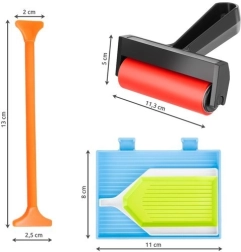 U pakiranju se nalaze 4 aplikatora („olovke“), 3 rebraste posudice za razvrstavanje i zahvaćanje dijamanata, pinceta, ljepilo, prijenosna torbica i valjak. Set je idealan za početnike i napredne te je odličan za zajedničko stvaranje s djecom i prijateljima.