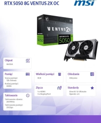 MSI GeForce RTX 5050 8GB VENTUS 2X OC dizajnirana je za glatke gaming performanse i pouzdanost u kompaktnom izvedenju s dva ventilatora. Zahvaljujući modernoj NVIDIA Blackwell arhitekturi i tehnologiji DLSS 4 dobit ćete višu brzinu sličica, oštriju sliku i bržu odzivnost u najnovijim igrama.