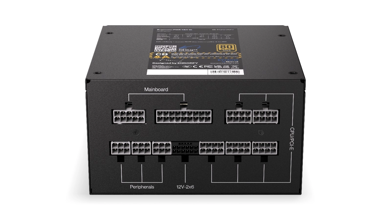 Supremo FM6 750 W ispunjava najnoviji standard ATX 3.1 i lako podnosi kratkotrajne vršne opterećenja. U pakiranju se nalazi kabel 12V-2x6 za potpunu kompatibilnost s modernim PCIe 5.1 GPU-ovima, a tu su i klasični PCI-E 6+2 PIN konektori za tradicionalne grafičke kartice.