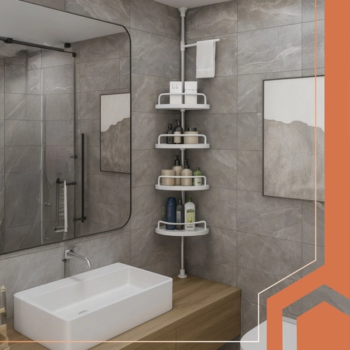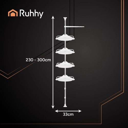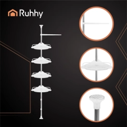 Praktična kutna polica RUHHY donosi pametno rješenje za male i velike kupaonice. Zahvaljujući teleskopskoj konstrukciji lako se prilagođava prostoru i čvrsto stoji između poda i stropa. Bez bušenja, bez nereda – idealno za tuš-kabinu i uz kadu.