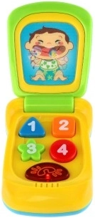 Preklopni dječji mobilni telefon idealan je prvi “mobitel” za najmlađe. Nakon pritiska šarenih tipki oglašavaju se kratke, ugodne melodije, a istodobno treperi tipka s ikonom telefona. Igračka pomaže razvijati finu motoriku, maštu i kognitivno opažanje te se zahvaljujući kompaktnom dizajnu izvrsno drži u malim ručicama.