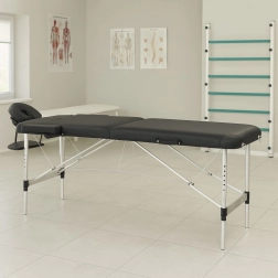 Komfor klijenta osigurava podesivi naslon za glavu s glatkom regulacijom kuta i visine, otvor za lice s poklopcem za udobnost pri ležanju na trbuhu te vješani naslon za podlaktice za prirodan položaj ruku. 5 cm debela pjena i lako periva PVC koža donose higijenu i dug vijek trajanja.