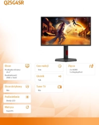 Ergonomsko postolje s funkcijom Pivot (okretanje u portret), podešavanjem visine i nagibom omogućuje udoban rad i igranje cijeli dan. Bogata povezivost HDMI x2 i DisplayPort osigurava jednostavno spajanje PC‑a, konzole i prijenosnika, dok se integrirani zvučnici brinu za zvuk bez potrebe za vanjskim zvučnicima.