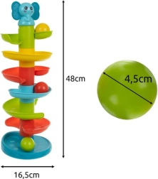 Pustite djecu da otkriju radost pokreta i zvuka s šarenim kulatornjem s kuglicama i spiralnim toboganom. Ubacite kuglicu na vrh i promatrajte kako se uz veselo zveckanje kotrlja prema dolje – jednostavna, ali vrlo zabavna interaktivna igra koja zabavlja dugo vremena.