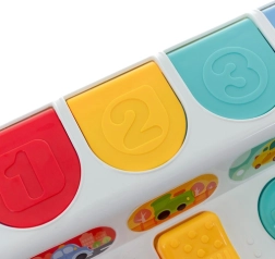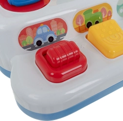Raznoliki upravljački elementi (poluga, okretni gumb, gumb) stimuliraju finu motoriku, podupiru koordinaciju i jačaju razumijevanje uzroka i posljedice. Žive boje privlače pažnju i motiviraju na daljnju igru. Sjajan prijedlog za poklon za male ljubitelje automobila i strojeva.