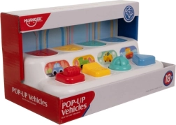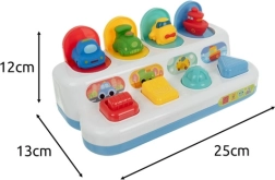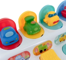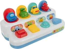 Ova interaktivna pop-up igračka idealna je za prvo istraživanje svijeta tehnike i kretanja. Djeca pritiskom tipki aktiviraju skrivena vozila koja iskaču iz šarene baze – jednostavno i privlačno rješenje za učenje kroz igru. Kompaktne dimenzije olakšavaju prenošenje i spremanje, a igračka je izvrsna i za stol i za tepih.