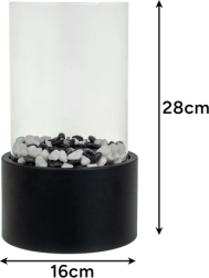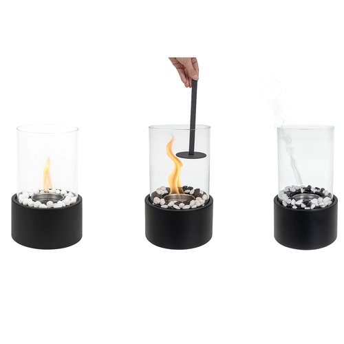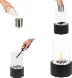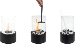 Čelični spremnik s apsorpcijskim keramičkim vlaknom produljuje vrijeme gorenja i olakšava rukovanje. U kompletu je ugasivač/prekidač plamena za praktično gašenje. Jednostavna montaža i pjenaste podloge protiv ogrebotina na namještaju čine ovaj biokamin praktičnim rješenjem za svakodnevnu upotrebu.