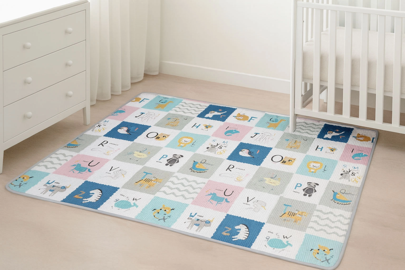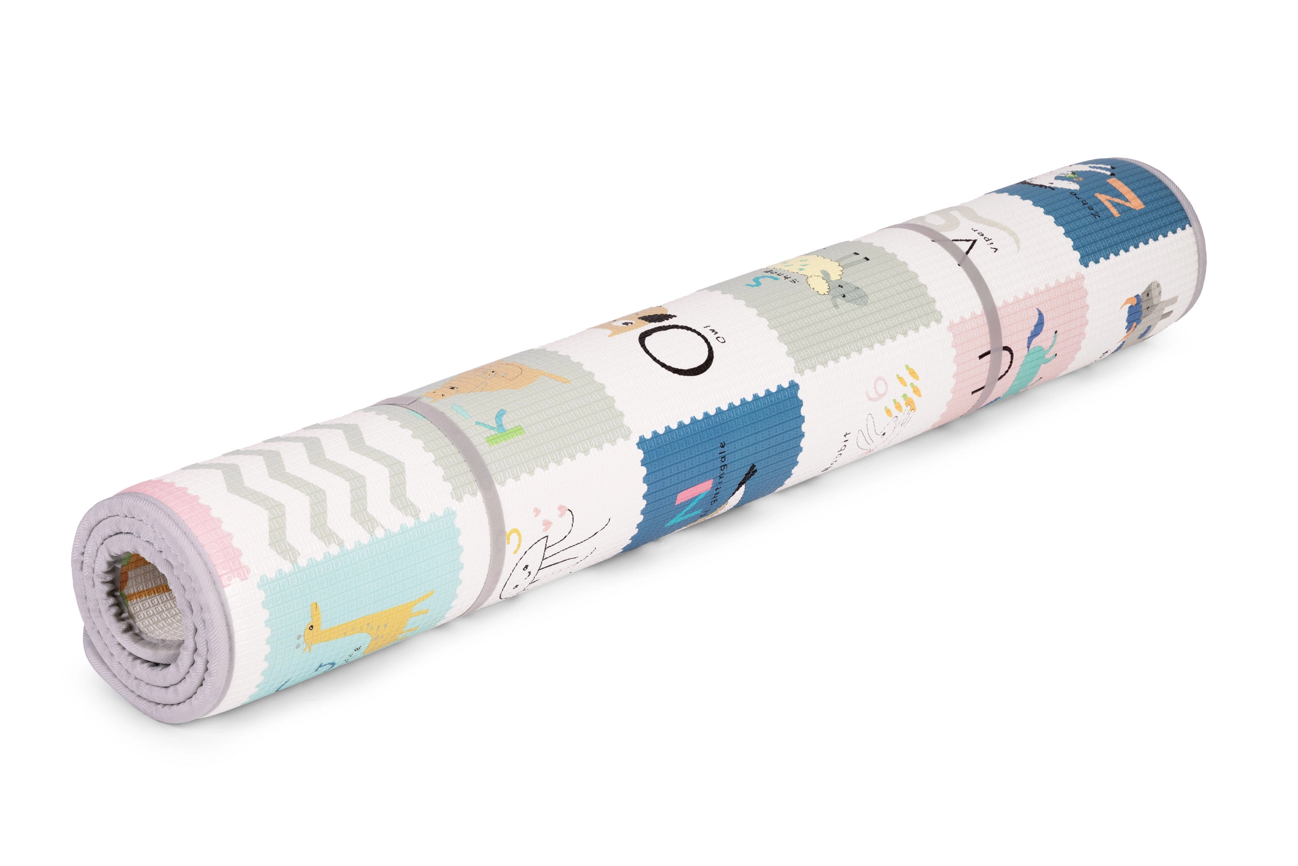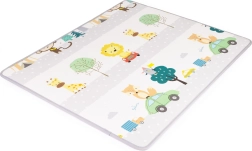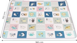 Obostrani tisak potiče maštu i učenje: jedna strana nudi veselu abecedu sa sličicama i engleskim riječićima, druga životinje, prijevozna sredstva i prirodu. Podlogu lako smotate i osigurate trakama na čičak – idealno za pospremanje i prenošenje u igraonicu, kod bake i djeda ili na odmor.