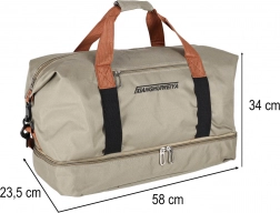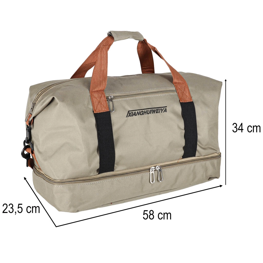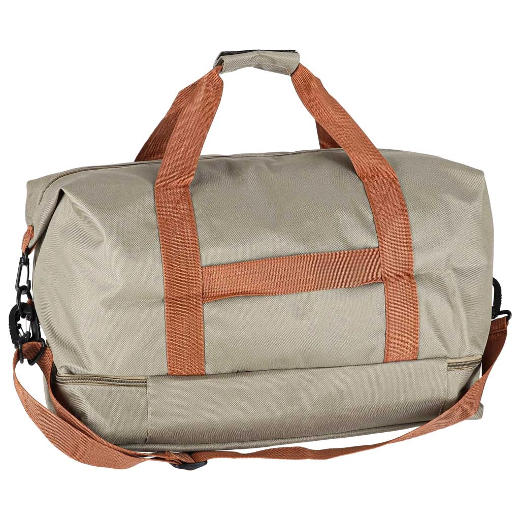 Ova višenamjenska putna torba dizajnirana je za vikend izlete i duža putovanja. Zahvaljujući promišljenoj organizaciji prostora lako ćete odvojiti obuću ili kozmetiku u donjem pretincu s patentnim zatvaračem od odjeće u glavnom pretincu. Čvrste ručke sa spojnicom i podesiva naramenica osiguravaju udobno nošenje u ruci i preko ramena.