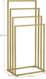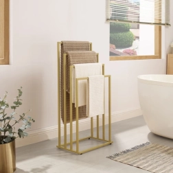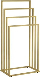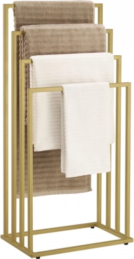 Unesite red i stil u kupaonicu. Četiri stepenasto raspoređena kraka omogućuju cirkulaciju zraka za brže sušenje ručnika, kućnih ogrtača i kupaćih kostima. Minimalistički okvir u mat zlatnoj boji uklapa se u moderne i klasične interijere te štedi prostor zahvaljujući vertikalnom rješenju.