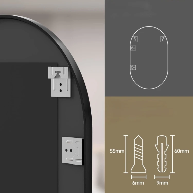 Na stražnjoj strani pripremljeni su čvrsti metalni nosači za sigurno učvršćivanje na zid. U pakiranju se nalazi i montažni set, pa ćete ogledalo jednostavno instalirati bez dodatne kupnje pribora. Kvalitetno zrcalno staklo debljine 4 mm osigurava čist i oštar odraz.