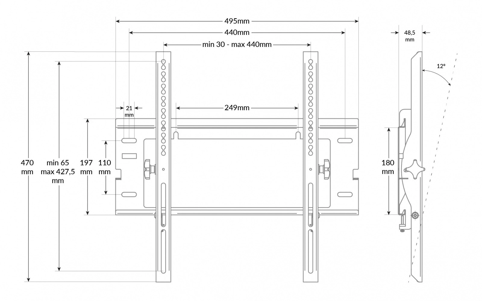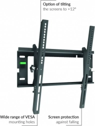 Nosač EWB150 idealan je izbor za sigurno i elegantno učvršćivanje ravnih televizora i monitora. Njegov tanak profil s udaljenošću od 48 mm od zida štedi prostor, dok funkcija nagiba do 12° povećava udobnost gledanja i smanjuje odsjaje.