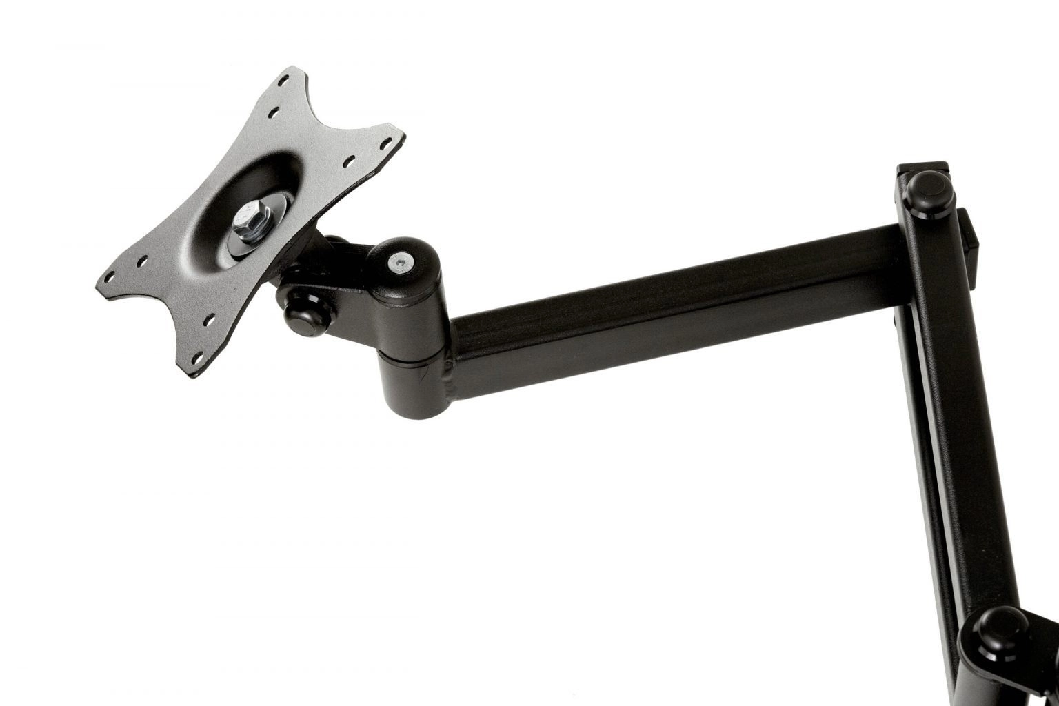 Dvostruka ruka s višestrukim zglobovima omogućuje brzo zakretanje, naginjanje i izvlačenje monitora. Zahvaljujući kompatibilnosti VESA 75×75 i 100×100 instalacija je jednostavna i brza. Dio pakiranja je i upravljanje kabelima koje održava radno mjesto urednim i estetskim.