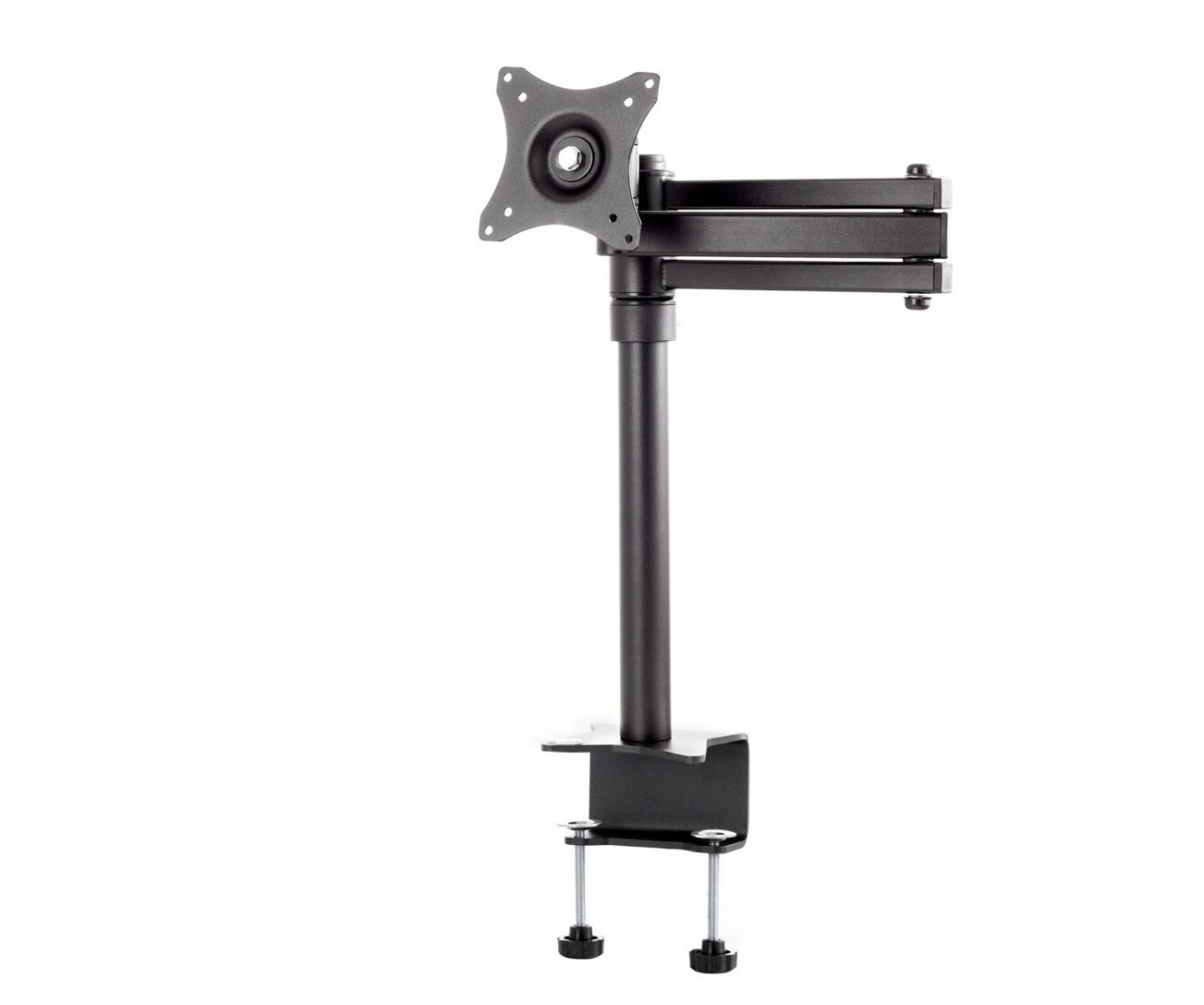 Ovaj univerzalni držač za monitor kombinira robusnu metalnu konstrukciju s glatkim podešavanjem položaja. Jednostavno prilagodite visinu, udaljenost i kut zaslona kako bi odgovarali vašem radnom stilu te tako podržite ispravnu ergonomiju i smanjenje naprezanja vrata i leđa.