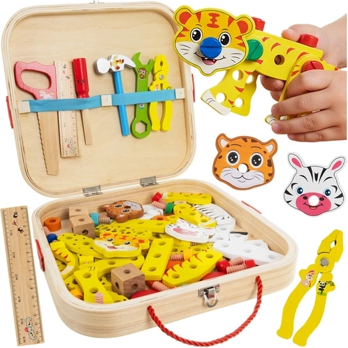 Ovaj bogati set spaja igru i učenje. Uz pomoć pile, čekića, odvijača i kliješta djeca vijcima spajaju i sastavljaju šarene dijelove u vesele životinje i prijevozna sredstva. Potiče koordinaciju, preciznost i prostornu predodžbu, te ujedno uči osnovama konstruiranja.