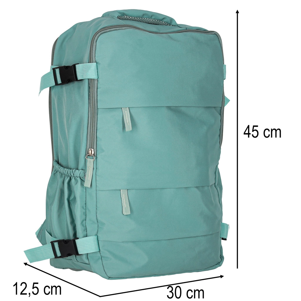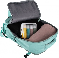 Za stabilnost tereta služe četiri kompresijske trake koje smanjuju volumen i drže sadržaj na mjestu. Podstavljene naramenice s mrežicom i gornja ručka s mrežicom osiguravaju udobno i sigurno nošenje. Pouzdani patentni zatvarači i promišljena organizacija čine ovaj ruksak izvrsnim suputnikom na putu.