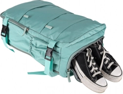 Dva gornja pretinca na patentni zatvarač i jedan donji zasebni odjeljak drže odjeću, obuću i dodatke pregledno odvojene i lako dostupne.