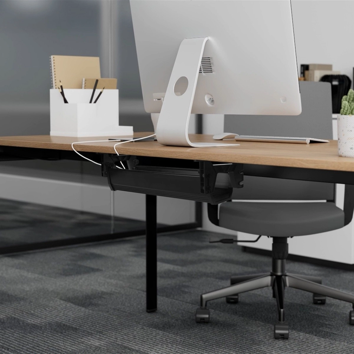 Kanal ispod ploče stola drži napojnu letvicu i kabele izvan vidokruga, poboljšava estetiku i sigurnost vašeg radnog mjesta.