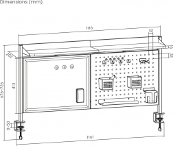 Održavajte radni stol čistim i preglednim. Pregrada ER-301 pričvršćuje se pomoću robusnih stezaljki izravno na ploču stola, bez potrebe za bušenjem. Cijelom širinom prolazi uska gornja polica za bilješke, dekoracije ili mini organizator.