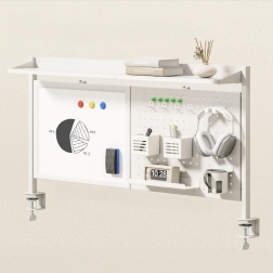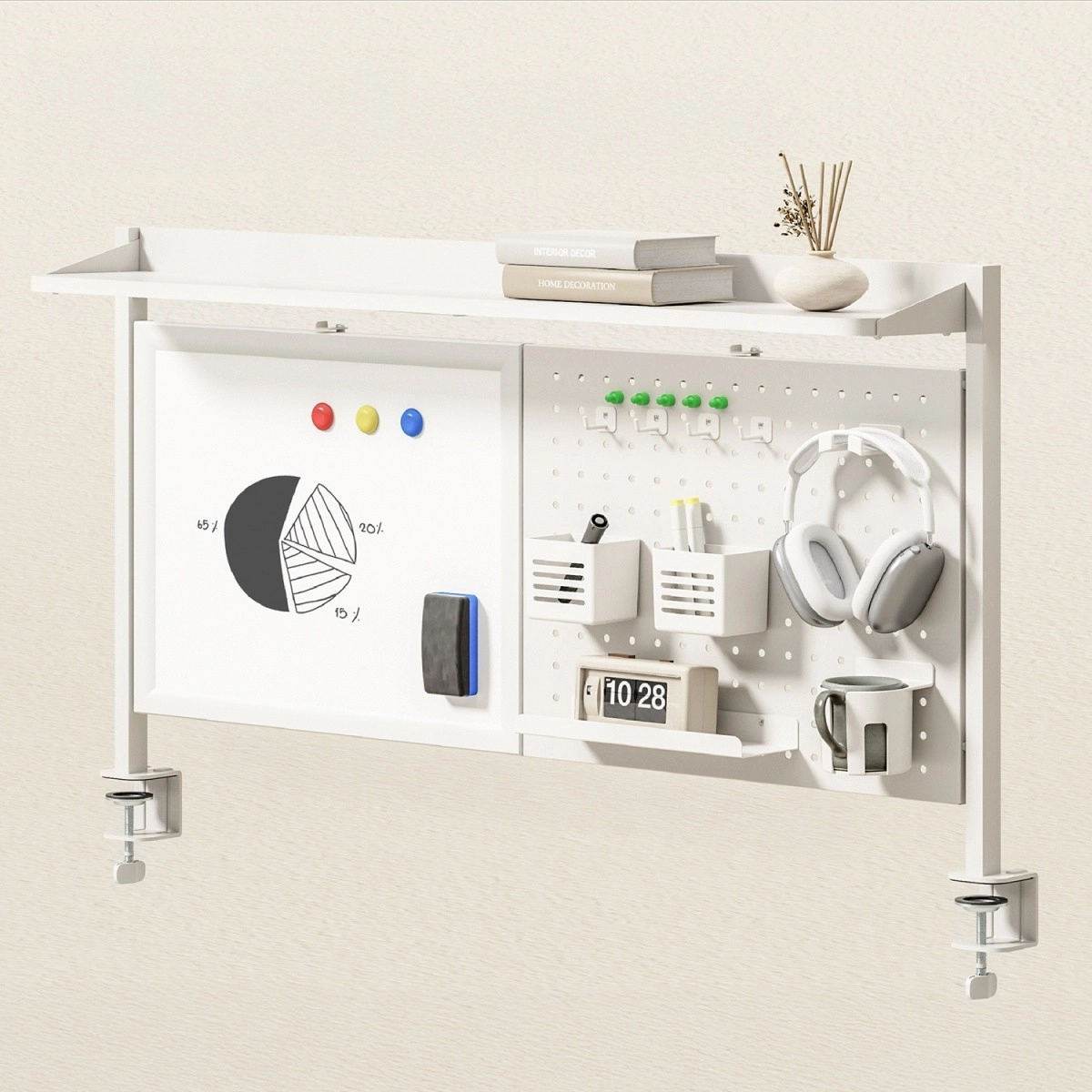Pišite, brišite i pričvršćujte bilješke na bijeloj ploči, dok na perforiranom panelu organizirate kuke, čašice i policu točno po svojoj mjeri.