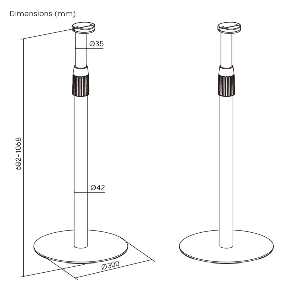 Podni stalci MC-496 dizajnirani su za savršeno postavljanje zvučnika SONOS ERA 100 i ERA 300. Zahvaljujući teleskopskom podešavanju visine lako ćete doraditi optimalnu razinu slušanja i usmjeravanje zvuka. Robusna čelična baza i čvrst stup osiguravaju sigurnu stabilnost bez neželjenih vibracija.