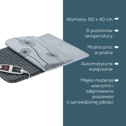 Podloga je izrađena od mekane, prozračne tkanine ugodne na dodir. Vašu sigurnost osigurava Beurer sigurnosni sustav s kontinuiranom kontrolom temperature i automatskim isključivanjem nakon 90 minuta.
