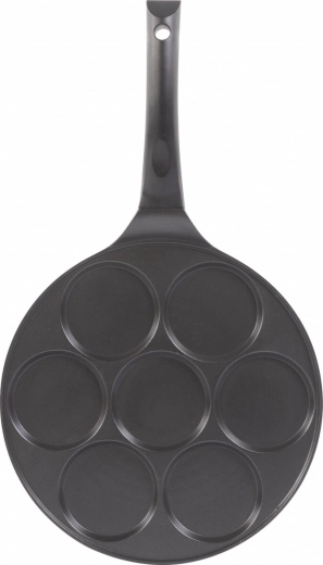 Otkrijte praktičnost pri pripremi savršenih palačinki, racucha ili popečaka. Ova tava od visokootpornog aluminija nudi 7 okruglih udubina za ravnomjerno oblikovane porcije i pouzdan rezultat na svakoj ploči štednjaka. Neprianjajuća površina bez PFOA smanjuje potrebu za masnoćom i olakšava serviranje i čišćenje.