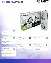 Palit GeForce RTX 5060 Ti White OC dizajnirana je za igrače i kreatore koji žele spojiti čist bijeli izgled s učinkovitim hlađenjem i stabilnim performansama. Dva 95 mm aksijalna ventilatora osiguravaju tihi rad i pouzdano odvođenje topline, dok 2-utorsko izvedenje olakšava ugradnju u kompaktnija PC kućišta.